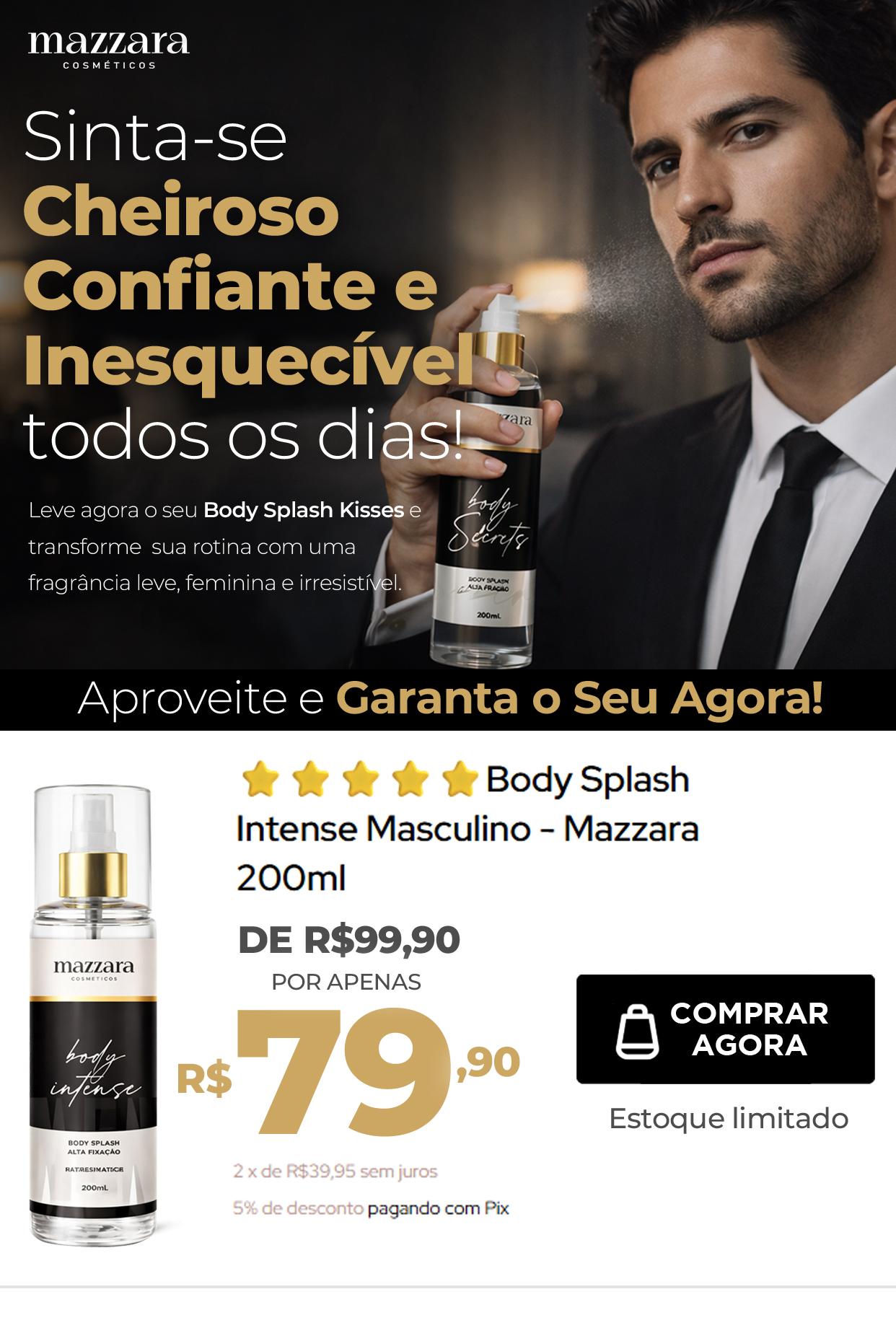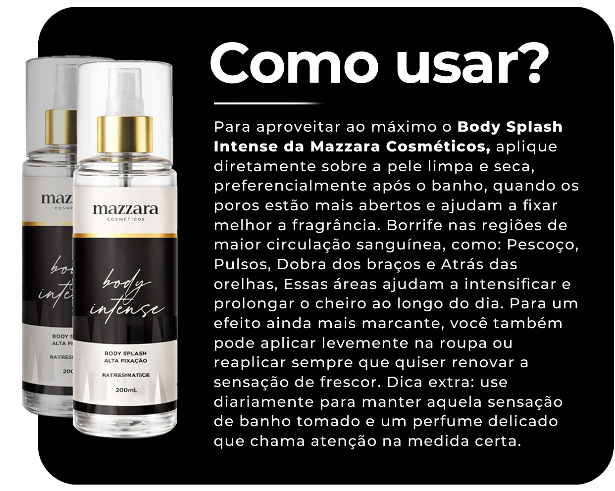 Uma fixação surpreendente para um body splash, mantendo você cheirosa por muito mais tempo.