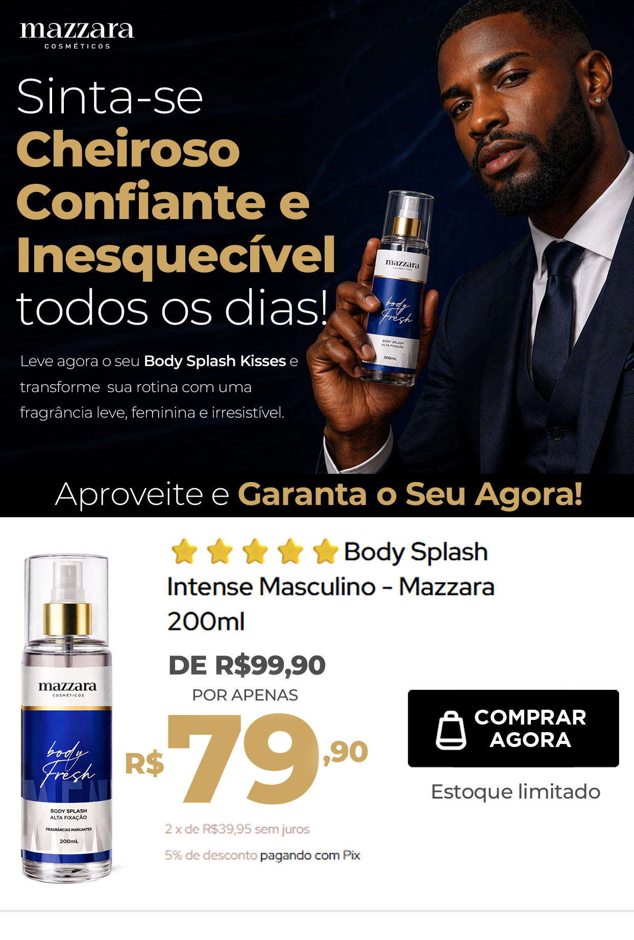 Uma fixação surpreendente para um body splash, mantendo você cheirosa por muito mais tempo.