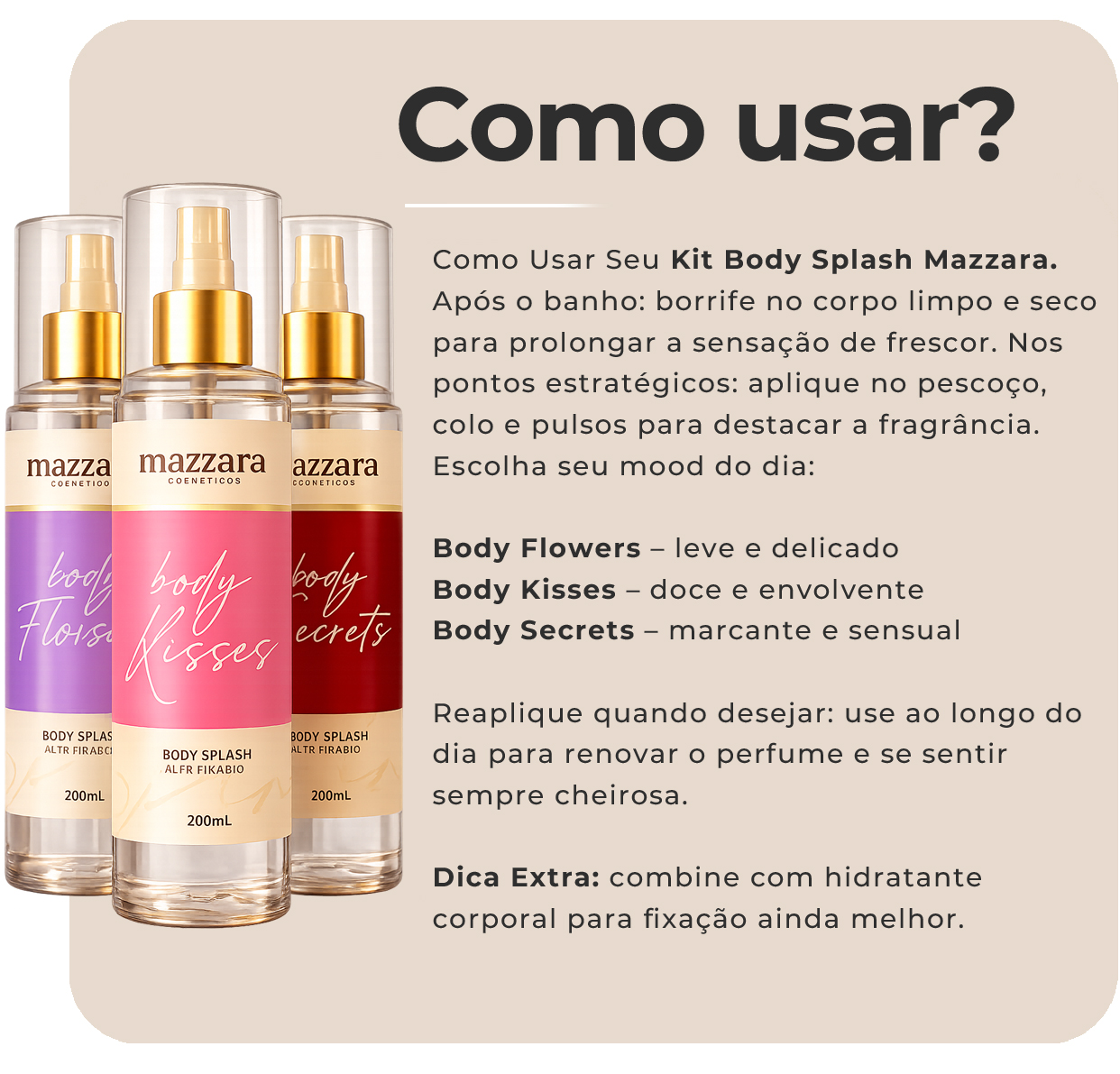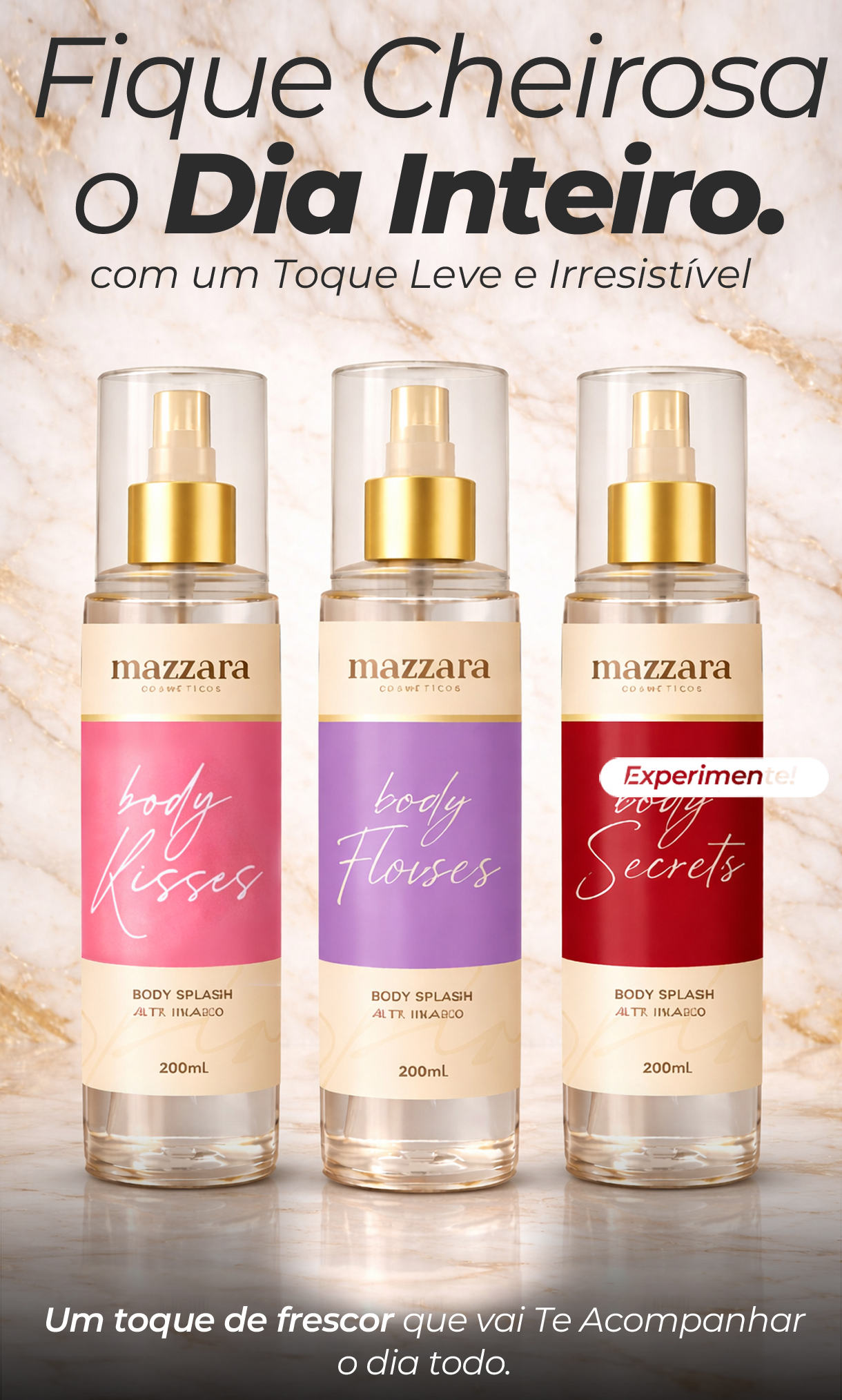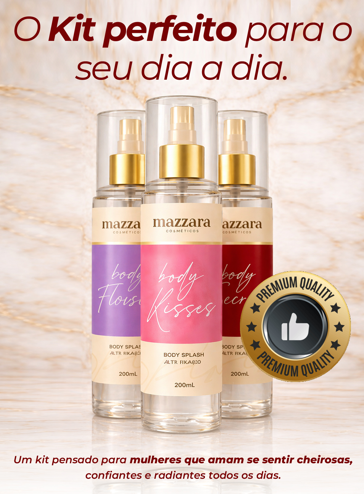 O Kit Body Splash Mazzara foi feito exatamente para isso: deixar sua pele levemente perfumada, com um toque delicado, elegante e viciante.